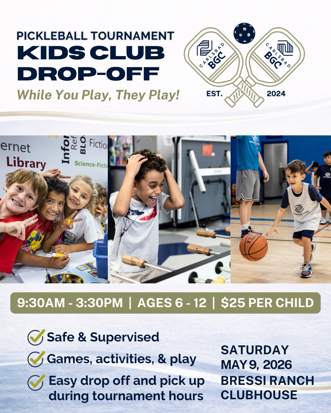 The Boys & Girls Clubs of Carlsbad is excited to host our 3rd annual charity pickleball fundraiser!